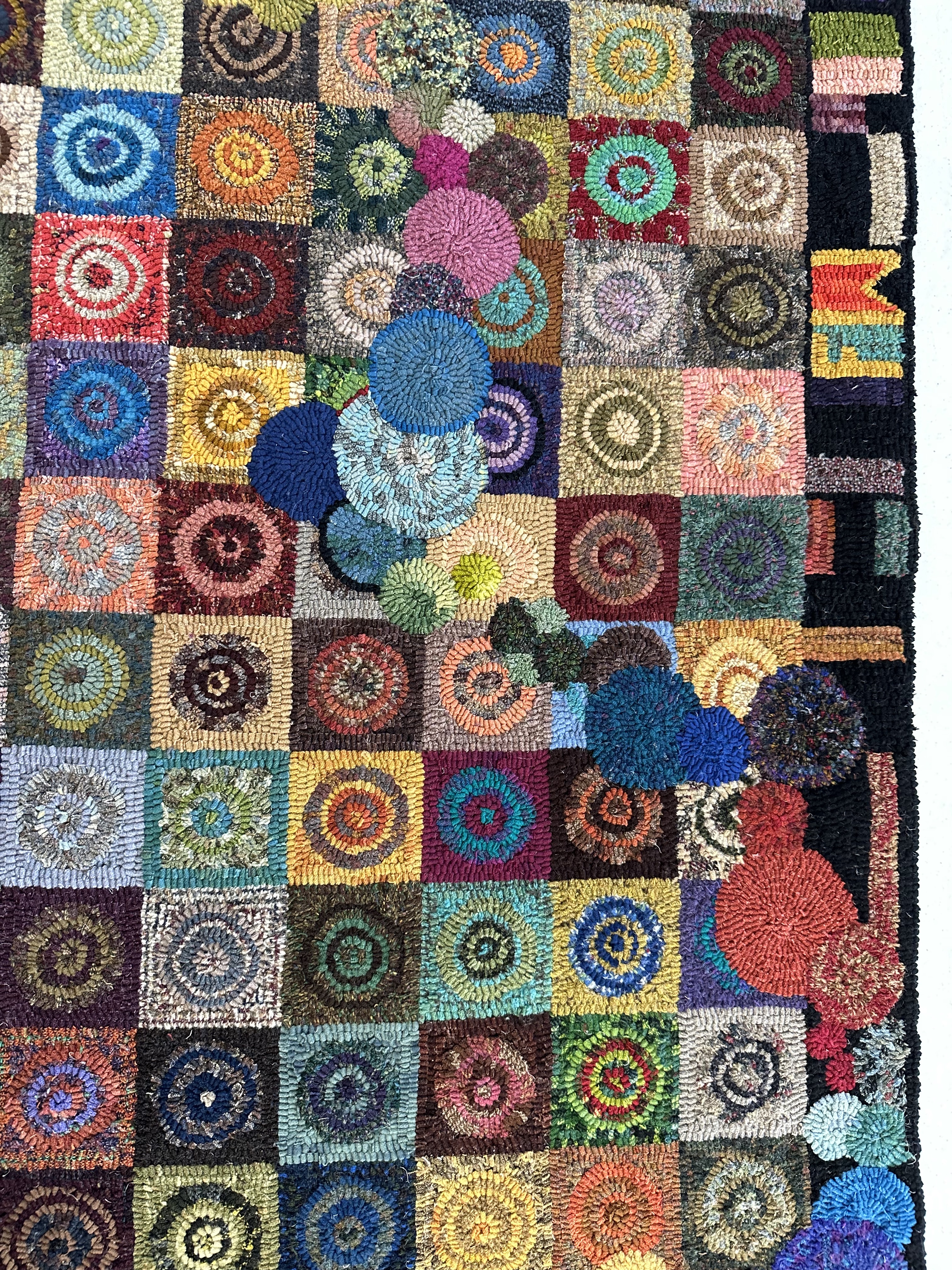 Mariah Krauss of the Green Mountain Rug Hooked Rugs shop. As a 3rd generation hooker, Mariah brings some of her work to share with us. She will focus on deciding what the emotional appeal to your designs are. Her rug Aries Women is pictured here.