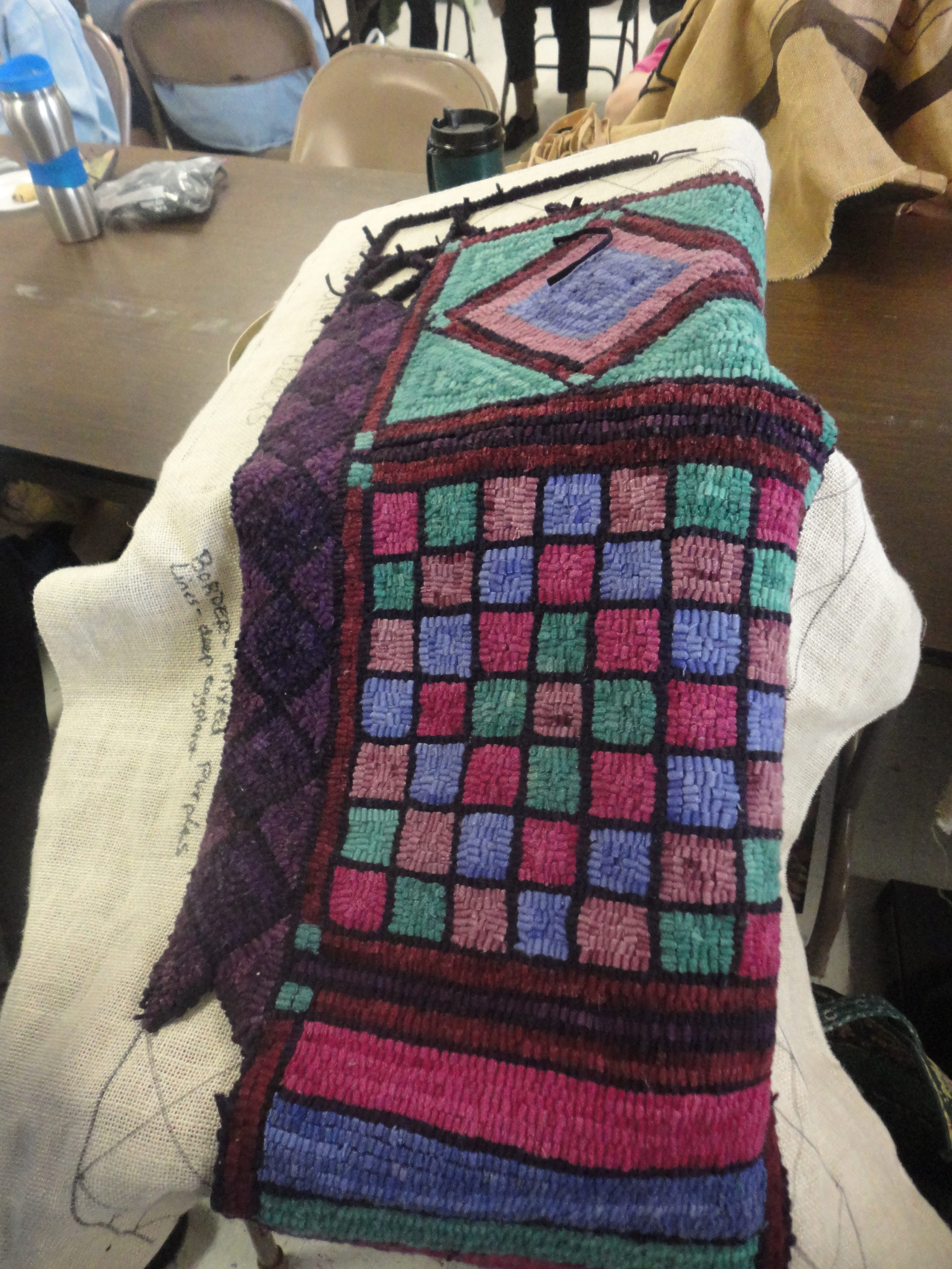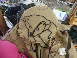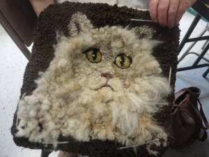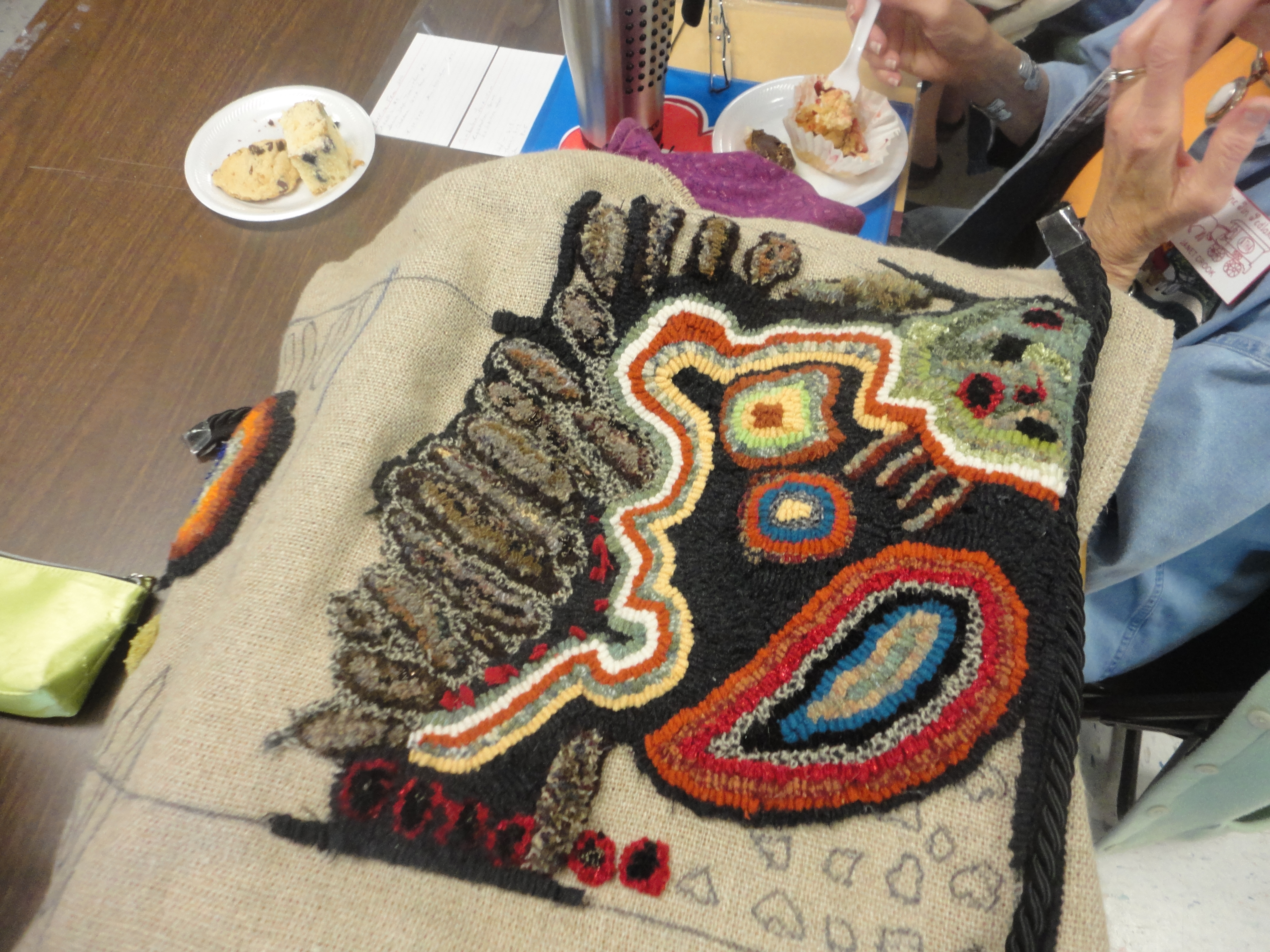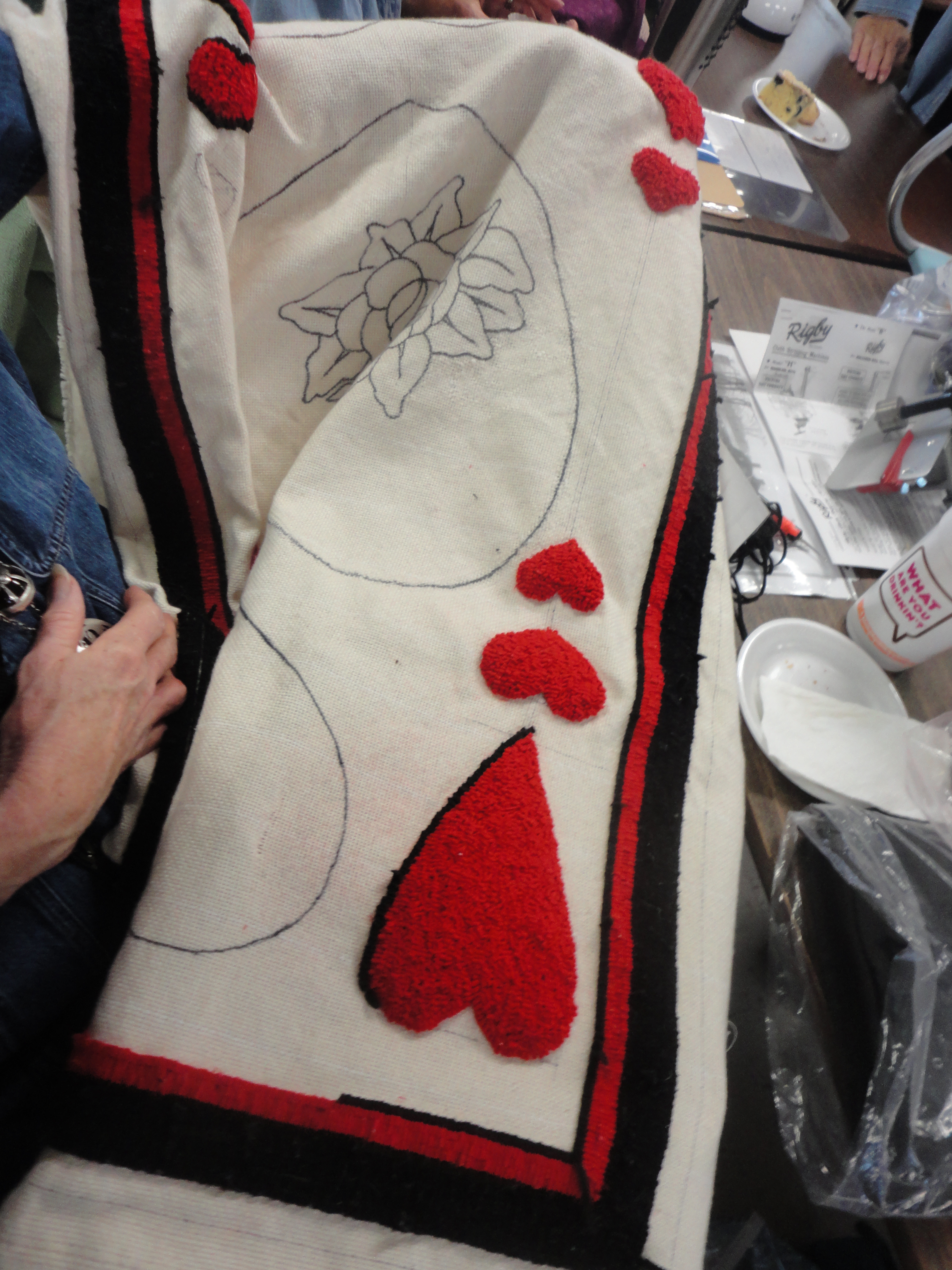 Volunteers should create a mat or rug that is a maximum of 9″ across. In order to open this to as many volunteers as possible you may be flexible on your size and can create a single or set of mug mats, or a larger mat. It can be square, round, rectangular or shape that is pleasing with the design. It can be hooked or punchneedle, wool strips or yarn, and should be a design that will make the recipient smile and feel like they have received a hug.
