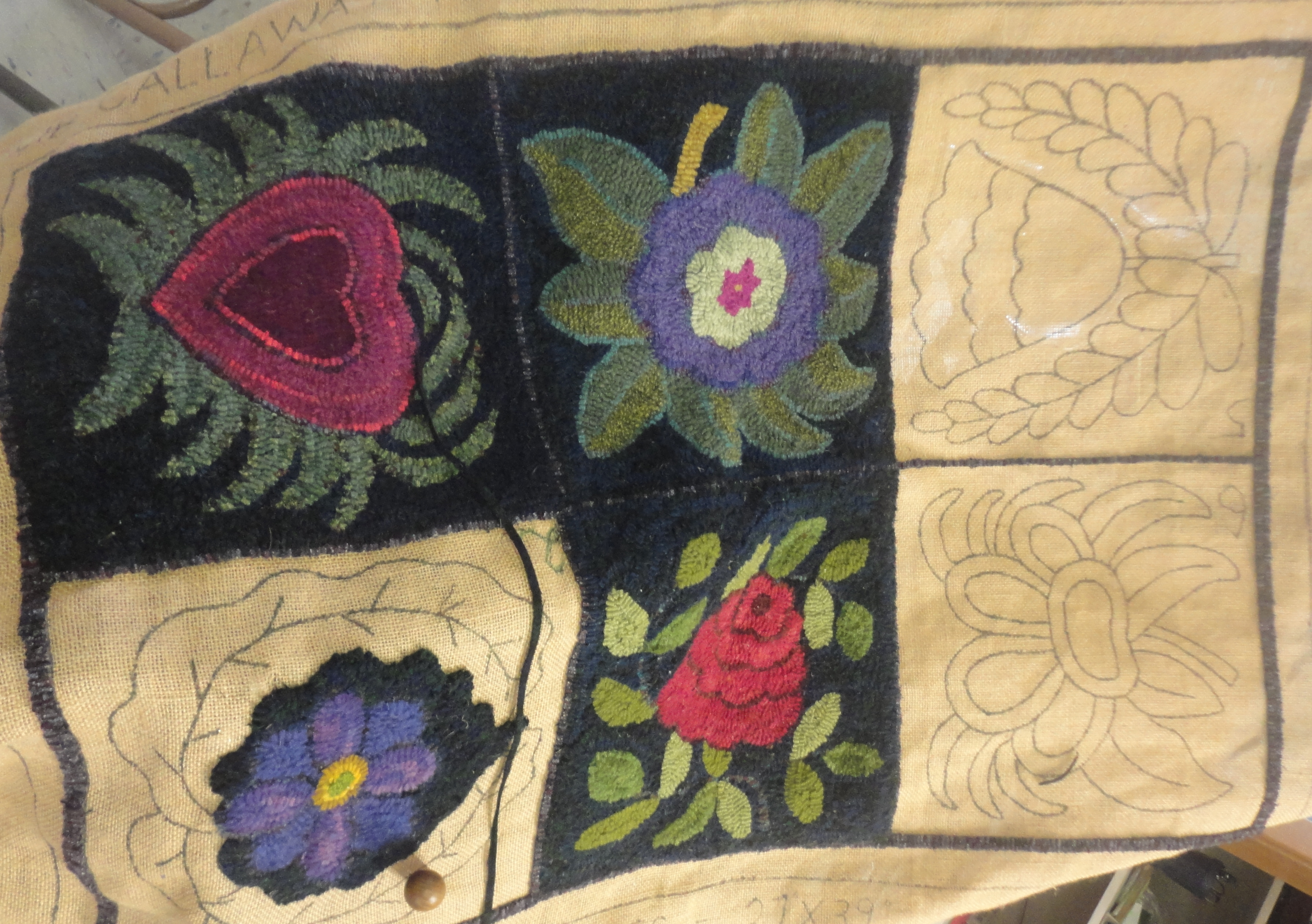 Can now say I’m proud of my mat, but still not sure if I want to do the 3 others needed for a pillow. 🙂 Think I’d rather work on a new rug design.